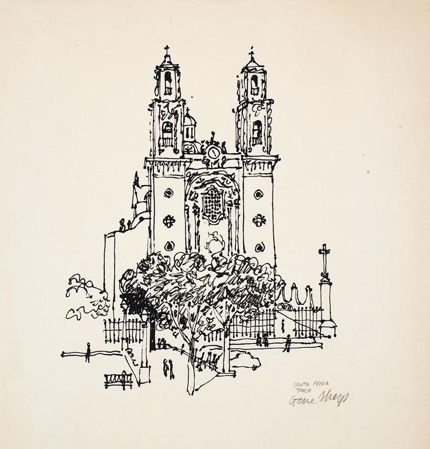 “Church Santa Prisca, Taxco” - c, 1970s - pen and ink